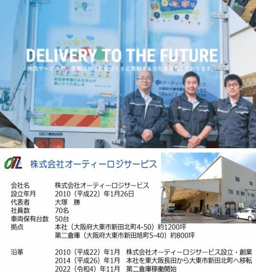 株式会社オーティーロジサービス様は、大阪府大東市に拠点を置く、2010年1月創業の運送会社です。保有車両台数は56台で、住宅用建材、内装全般などから化学品、食品など数多くの商品配送を取り扱っています。