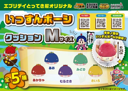 オリジナル景品第2弾として登場するのは、エブリデイ多摩ノ国店のマスコットキャラクター「いっすんボーシ」がグッズになります。こちらはエブリデイ全店舗にて順次登場いたしますでのお楽しみに