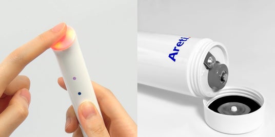 軽量&コンパクトなうえ、乾電池式だから電圧の心配なく海外でも使えるアレティの光美顔器「トライカラー」。