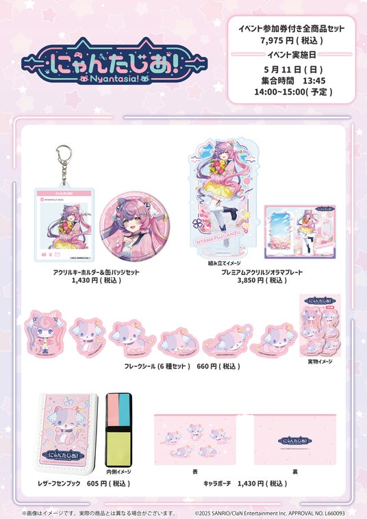2025年4月18日18:00~2025年5月11日15:00までの先行受注期間中に通販サイト「サンリオアニメストアONLINE」でイベント参加券付き全商品セットをご購入いただいた方には、2025年5月11日(日)14:00~15:00に「サンリオアニメストア 池袋P'PARCO店」で開催予定の特別イベントへご参加いただけます。この機会にぜひお求めください!