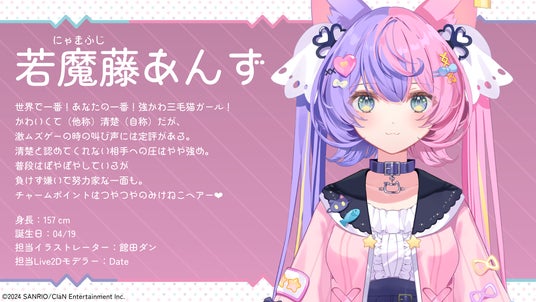 株式会社ClaN Entertainment(本社:東京都港区 代表取締役社長:大井 基行、以下ClaN)は、株式会社サンリオ(本社:東京都品川区)と共同で行うVTuberプロジェクト「にゃんたじあ!」に所属する「若魔藤あんず」が4月19日に誕生日を迎えたことを記念し、誕生日グッズの販売を行います。