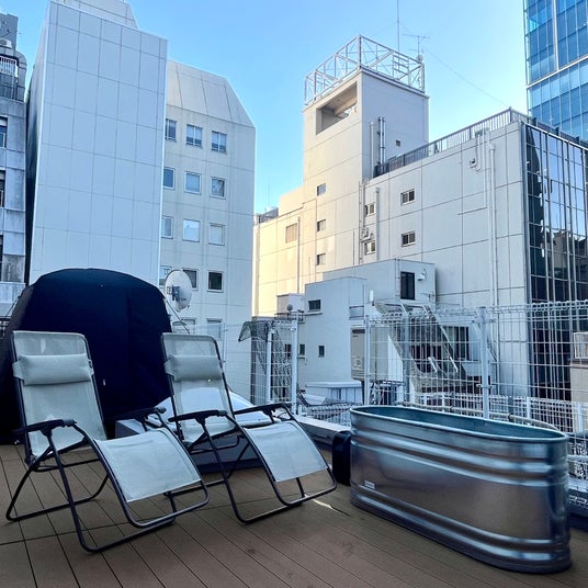 屋上の水風呂、外気浴の様子