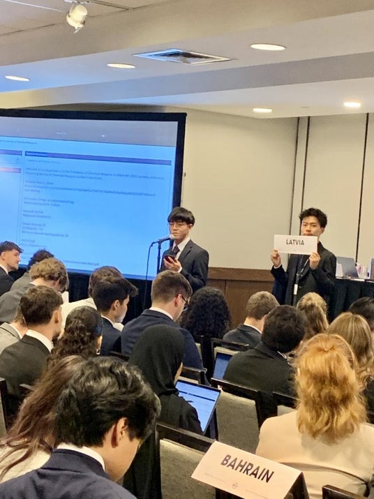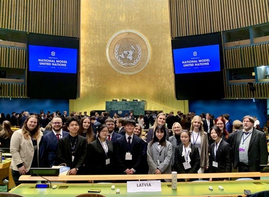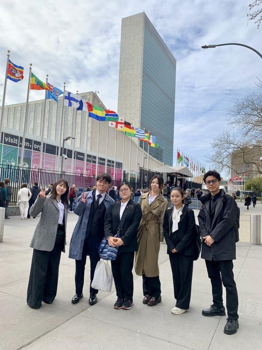国立大学法人岡山大学(本部:岡山市北区、学長:那須保友)のグローバル人材育成特別コースに所属する学生6人が、2025年4月6~10日にアメリカのニューヨーク市で開催された全米模擬国連(NMUN)に参加しました。ドイツの大学の学生と協力し、ラトビア共和国の代表として討論を行いました。