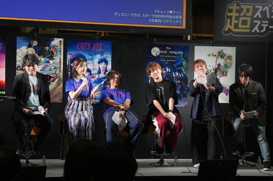 続いての作品は『キャッツアイ』。原作の連載開始から40年以上経つ今もなお、多くのファンに愛され続けている伝説的な作品です。2025年9月に新たにシリーズアニメ化され、ディズニープラスにて独占配信されることが決定しました。来生瞳役の小松がセリフを披露すると、視聴者から「888888」「ひとみー!」と喜びのリアクションが。演じるにあたり「今の世代に伝えていくという使命感がある」(小松)と語りました。俊夫と瞳の複雑な関係性については「付き合ってるけど、まだ登下校するくらいの」(小松)と、なかなか進展しない2人にヤキモキすることを話しました。