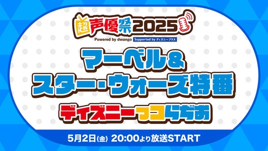 現在、実施中の「超声優祭2025 Powered by dwango , Supported by ディズニープラス」。5月2日(金)20時より「【マーベル&スター・ウォーズ特番】ディズニーっコらぢお@超声優祭2025」をシリーズ出演声優陣とお届けします。出演声優らが語るディズニー愛あふれたトークに注目です。