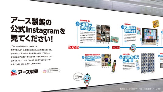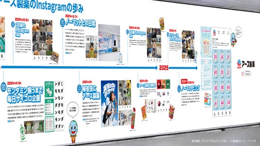 アース製薬株式会社(本社:東京都千代田区、社長:川端克宜、以下 「アース製薬」)は5月5日(月)に、これまでの公式Instagramの歴史を年表にして、新宿駅メトロプロムナードに掲出しました。