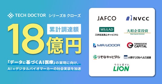 株式会社テックドクター(代表取締役:湊 和修、本社:東京都中央区、以下、テックドクター)は、このたびシリーズBラウンドにおける第三者割当増資および銀行融資により、総額約12億円の資金調達を実施したことをお知らせします。これにより累計資金調達額は約18億円となりました。