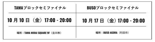 BUSOブロック・TAMAブロックの各プログラム最終回にプレゼンテーション審査(セミファイナル)が各会場にて実施されます。