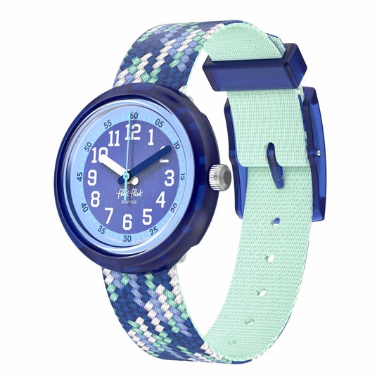 Flik Flakの時計はすべて、スイス製・教育的設計・洗濯機洗い可能・リサイクルPET素材のストラップを採用しており、バイオ由来素材を使用した環境にもやさしい仕様。クリエイティブなことが大好きで、一瞬一瞬を大切にするキッズへのギフトとしても最適です。