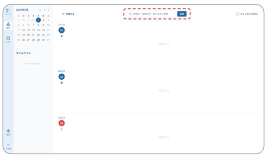 現場名、現場住所、取引先名で検索し検索結果を表示することができます。
