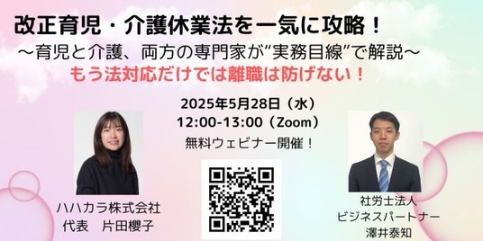 株式会社ハハカラ(代表:片田桜子)と社労士法人ビジネスパートナー社員である澤井泰知は、 1時間で“理解”と“実装の手がかり”を両立できる無料ウェビナーを共催します。
