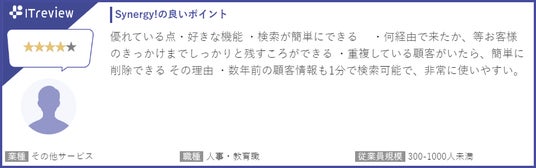 ITreviewに投稿のあったSynergy!ご利用のお客様からのレビューの一部を紹介します。