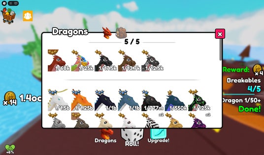 『🐉 RNG Clash: Rise of the Dragon』は、ダイスを振って多種多様なドラゴンを集めるRNGゲームです。