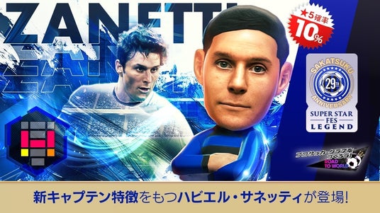 期間中のログインで「ハビエル・サネッティ」など、今回の“SAKATSUKU Anniversary SUPER STAR FES LEGEND”にもラインナップされた選手たちの★4バージョンが獲得できます。