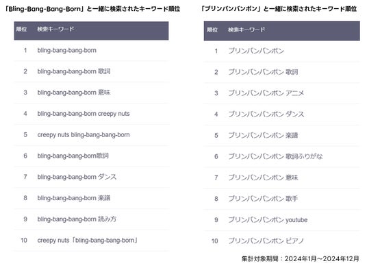 2024年にもっとも歌詞が調べられた楽曲は「Bling-Bang-Bang-Born」、子どものための検索意図も感じられる結果に