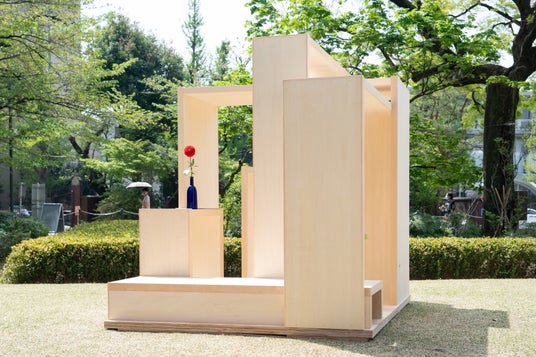 休憩するときの動作を誘発するマテリアルと、茶室がもつ空間的要素を表すマテリアルの組み合わせを提案。木のボックスを使う仮設建築という点も特徴的です。
