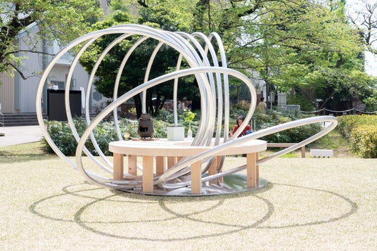 緊張と緩和が共存する“茶道とスプリングの近似性”に着目。素材にアルミ製の丸パイプなどを使うことで、これまでにない茶室空間となっています。