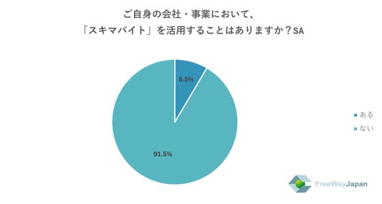 ご自身の会社・事業において、「スキマバイト」を活用することはあるか聞いたところ、「ない」が91.5%、「ある」が8.5%という結果だった。