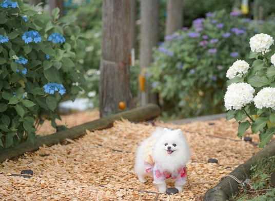 また、森の散策路には色あじさいの中を愛犬と一緒にお散歩をできたり、ウッドベンチやテーブルで一休みしたりしながらゆっくりご鑑賞いただけます。