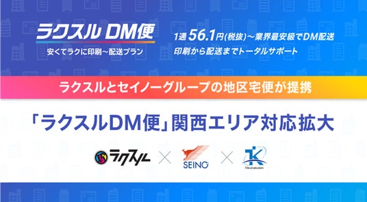 セイノーグループの株式会社地区宅便(本社:東京都練馬区、代表取締役社長 河合秀治、以下地区宅便)と印刷・集客支援のプラットフォームを運営するラクスル株式会社(本社:東京都港区、代表取締役社長CEO:永見世央)は、新配送プラン「ラクスルDM便」の対応エリアを関西エリア(大阪/京都兵庫/奈良/滋賀。以下、関西エリア)へ拡大しました。