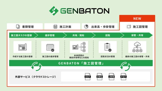 なお、「GENBATON」は「書類管理」「施工計画」「出来高・歩掛管理」の3つのサービスを展開しており、このたびリリースした「施工図管理」は4つ目のサービスとなります。