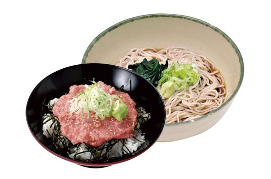 まろやかな味わいの鮪たたき丼に、そばをセットにしました。ボリューム感がありつつも、さっぱりとお召し上がりいただけます。