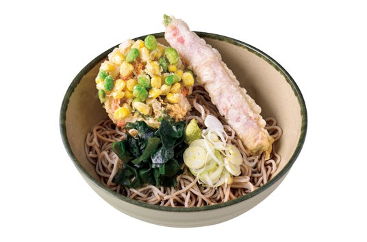 昨夏に大好評を博したアスパラベーコン巻き天が今年も登場!枝豆と北海道産カーネルコーンの色鮮やかなかき揚げを添えました。