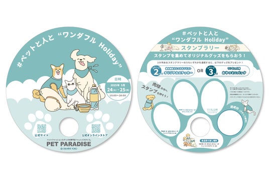 #ペットと人と “ワンダフルHoliday”の会場となる3か所では、オリジナルデザインのうちわ型スタンプシートを配布します。各スポットでのスタンプを集めると素敵なグッズがもらえるスタンプラリーを開催します。