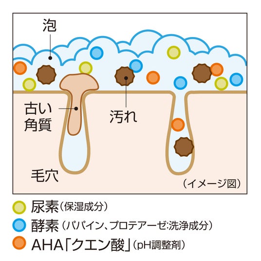 3.酵素(パパイン・プロテアーゼ/清浄成分) :皮脂汚れをスッキリ除去