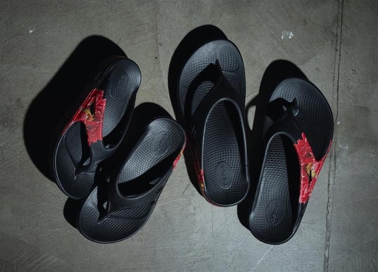 ボディには、OOFOSの最もアイコニックなモデル『OOriginal(ウーオリジナル)』を採用し、左足には側面かかと部分に、右足にはトング部分から側面にかけて、デザインをアシンメトリーに施しました。サイズは23cm~29cmの展開でユニセックスにて着用が可能です。