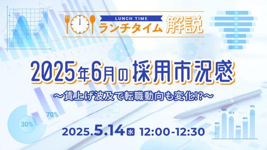 タイトル:ランチタイム解説「2025年6月の採用市況感」開催日時:2025年5月14日(水) 12:00 ~ 12:30 ※10分前から入室可能