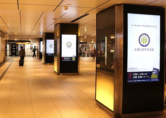 この度、企業法務革新基盤株式会社(以下、弊社)のサービスと実績に関する広告を、東京駅改札前デジタルサイネージに掲出いたしました。