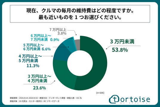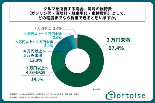 20代男女の7割弱が、クルマを所有する場合、毎月の維持費で負担できる費用は「3万円未満」と回答!株式会社トータスが「20代のクルマの購入費・維持費に関する実態調査」を実施!