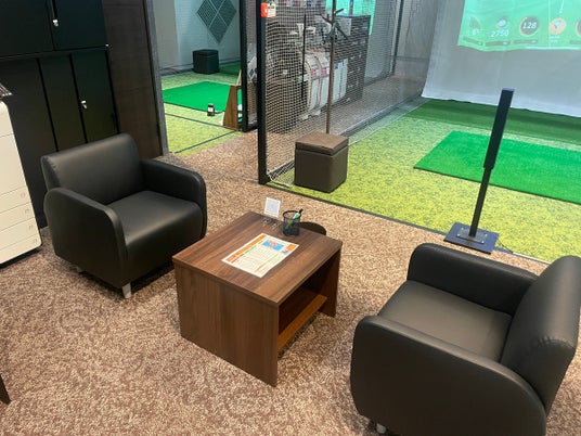 ■打席数:5打席 スイング解析機と弾道測定器(「GTRAK」)を完備。全打席スクリーン投影式。