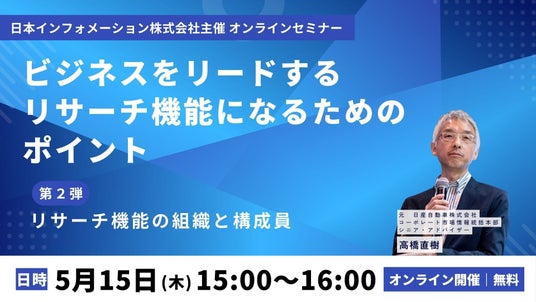 総合マーケティングリサーチ会社の日本インフォメーション株式会社(本社:東京都中央区、代表取締役社長:斎藤啓太)は、2025年5月15日(木)15:00より元日産自動車株式会社の高橋氏を講師にお迎えして、無料オンラインセミナーを開催します。