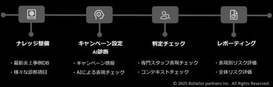 そこで、ビズテーラー・パートナーズは、専門チームのノウハウと最新のAI技術を組み合わせ、より高度で多角的なリスク診断を実現する「SNS炎上クリエイティブチェックテーラー plus AI」を開発いたしました。