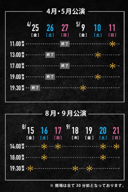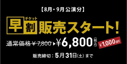 夏の公演は、5月いっぱいお得な価格で買える早割も開催中。完売する日程も出てくる可能性もあるので、予定のある方はこちらで早めに抑えておきたい。