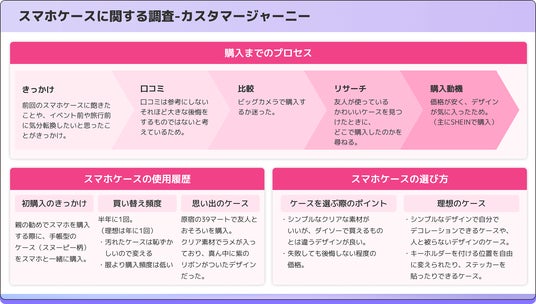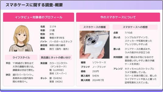 リサーチ後はこのようなレポートをお出しします。インタビュー結果はもちろん、そこから見えたターゲットのインサイトを分析し、具体的な施策案まで落とし込みます。