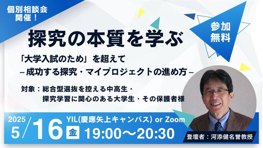 【5月16日(金)・参加無料】探究の本質を学ぶ:「大学入試のため」を超えて - 成功する探究・マイプロジェクトの進め方 -
