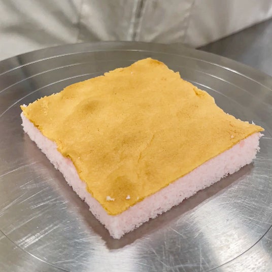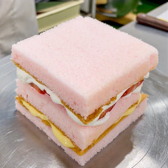 苺の濃縮エキスを贅沢に加えた特製シロップをたっぷり染み込ませ、しっとりふわふわの食感に仕上げた、やさしくて可愛いベビーピンクのスポンジケーキ。