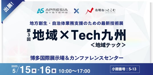 “つくって、つないで、つくし、人と社会を豊かにする”をミッションとする、APRESIA Systems株式会社(本社 東京都中央区、代表取締役社長 末永 正彦)は、2025年5月15日(木)~16日(金)の2日間、博多国際展示場で開催される「第3回 地域×Tech九州」に、株式会社有明ねっとこむ様と共同出展いたします。