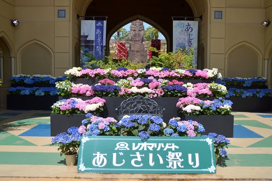 しっとりとした梅雨の時期を彩り、天気によってさまざまな表情を見せてくれるあじさい。ウェルカムエリアでは紫やピンク、青など色とりどりのあじさいがお出迎えしてくれます。時期によって見ごろのあじさいが変わるので、長い期間お楽しみいただけます。