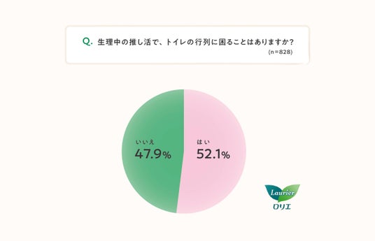 「経血漏れ」や「女性用トイレの行列」への不安が、生理中の推し活を楽しめない要因のひとつになっていることが明らかになりました。