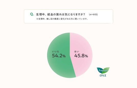 生理中、推し活の頻度に変化があると回答した人のうち、約2人に1人が「経血漏れが気になる」と回答しました。