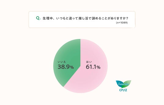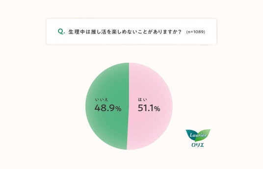 生理中は推し活を楽しめないことがあるかを尋ねる設問では、51.1%が「はい」と回答。