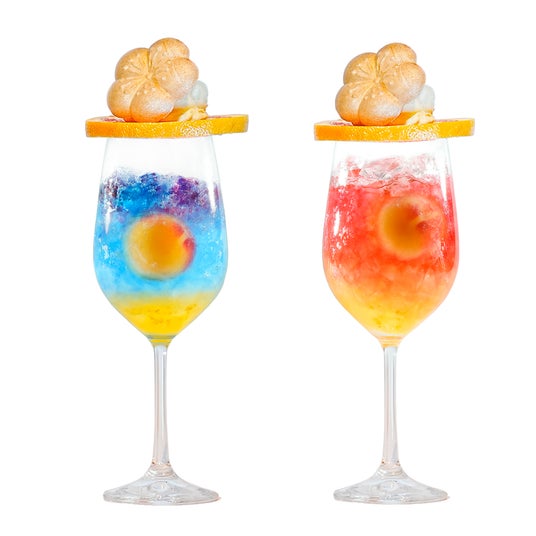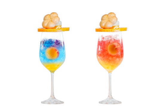 「梅酒カクテルクリームソーダ Violet Mist」は、紀州産南高梅のオリジナルシロップをベースに、バタフライピーや梅酒などを組み合わせた数タイプのジュレで紫陽花の環境によって花の色が変化するバリエーション豊かな彩りを表現しました。