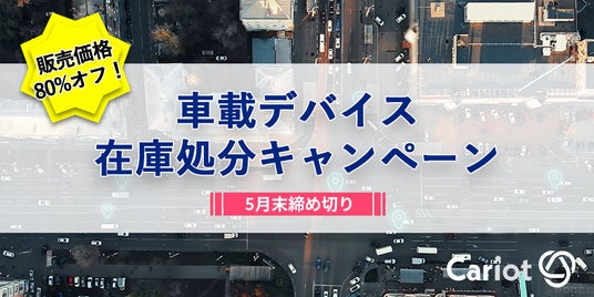 株式会社キャリオット(本社:東京都港区、代表取締役社長 齋藤 洋徳)がサービス展開する、クルマと企業をつなぐドライバー働き方改革クラウド「Cariot(キャリオット、以下Cariot)」が、車載デバイス在庫処分キャンペーンを開始することをお知らせします。