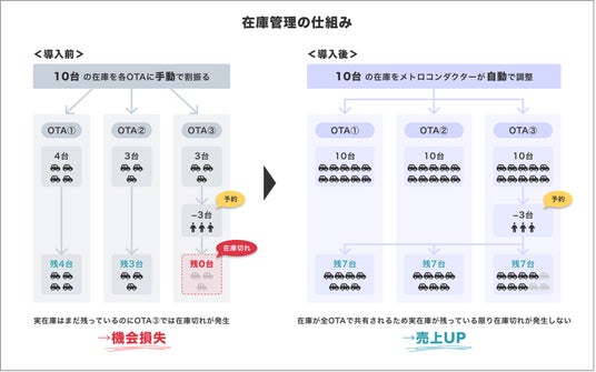 『メトロコンダクター』で、これまで手動管理が必要だった予約サイト間での在庫調整を自動化・流動化し、在庫管理業務における工数削減と在庫切れ回避による機会損失の削減を支援すると同時に、業界内で深刻化しているキャンセルによる収益ロスへの対策としてより多くの事業者様に導入いただくことで、レンタカー業界全体の収益性向上に貢献してまいります。