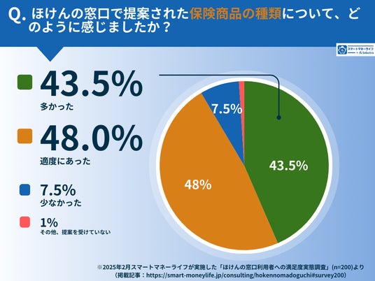 91.5%が提案された保険商品の種類が『多かった』『適度にあった』と回答。