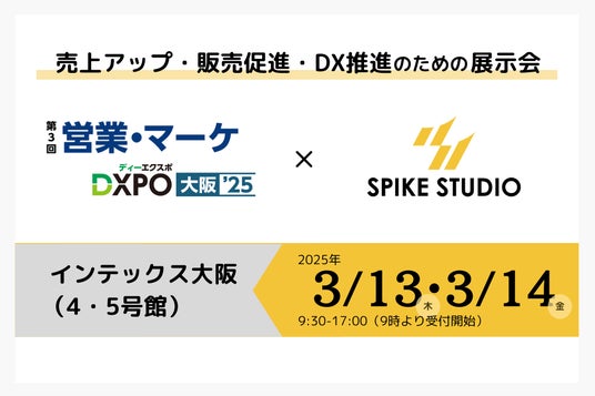 生成AI技術の社会実装を支援する株式会社スパイクスタジオ(本社:東京都港区、代表取締役CEO:黒柳茂 / 代表取締役COO:佐野宏英、以下 スパイクスタジオ)は、この度2025年3月13、14日にインテックス大阪で開催される「営業・マーケDXPO 大阪’25」に初出展することをお知らせいたします。